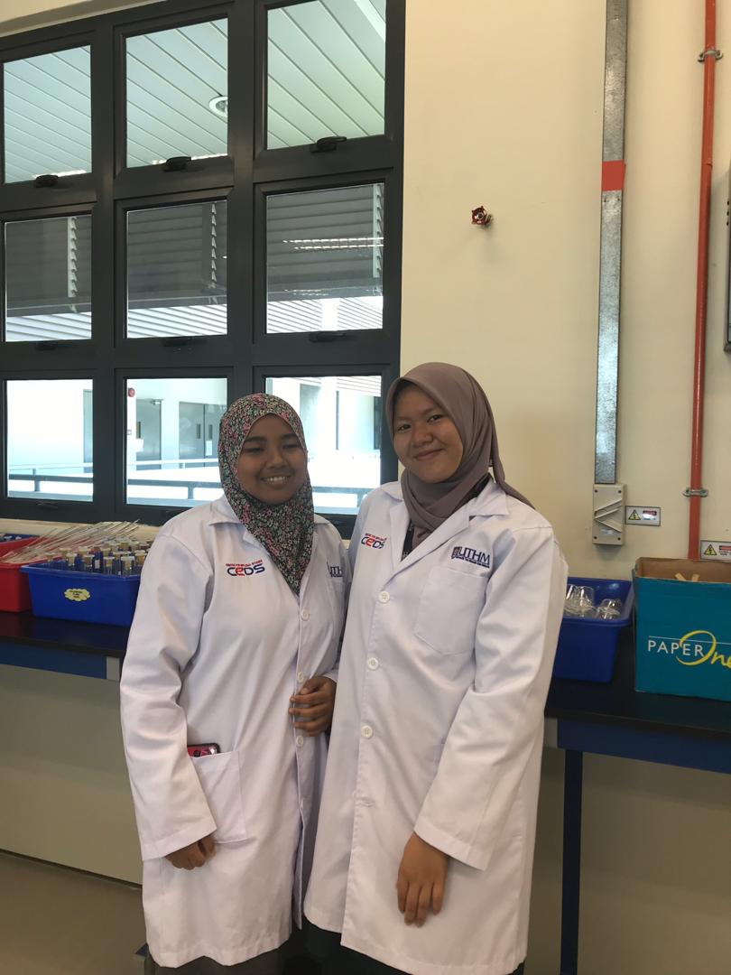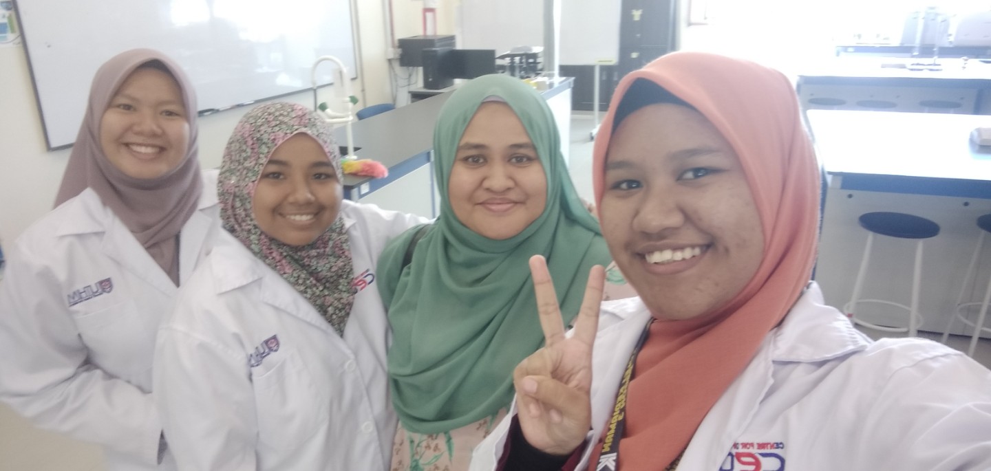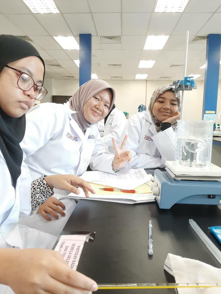 Doing my experiments with my classmates and lovely lecturer.